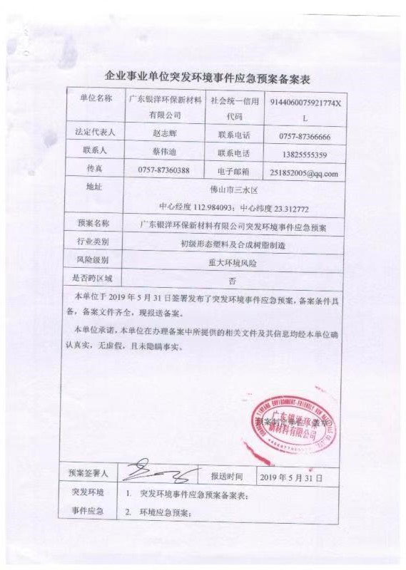● 广东华盛银洋环保新材料有限公司新建项目 环境影响评价第一次公示